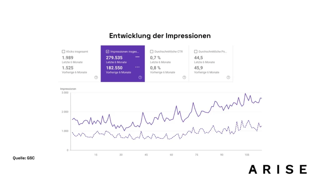 - Höhere Impressionen = größere Markenpräsenz & gestiegene Keyword-Abdeckung