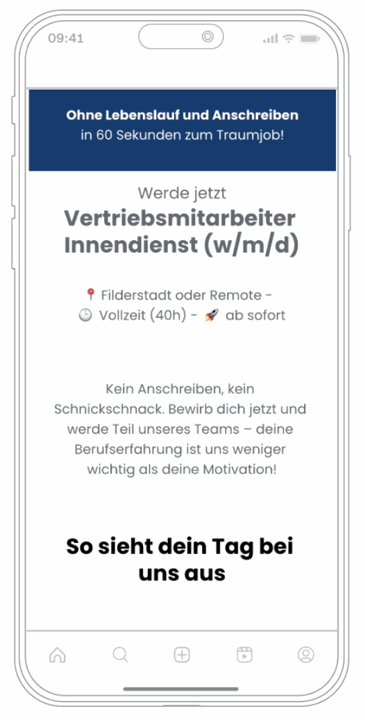 Alle wichtigen Kennzahlen sind transparent einsehbar: Wie viele Menschen sehen Ihre Anzeige? Wie viele klicken auf den Link? Wie viele Bewerbungen gehen ein? Sie erhalten regelmäßige Reports und haben jederzeit Einblick in die Performance Ihrer Kampagne.